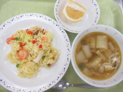 パエリア 牛乳 インゲン豆の田舎風スープ くだもの(はるか)