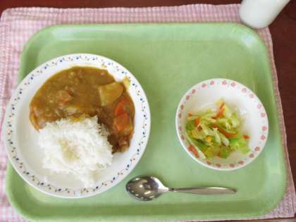 カレーライス 牛乳 福神漬 コーンサラダ