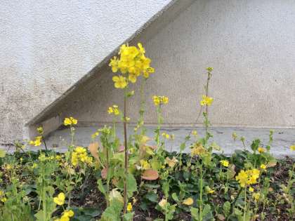 校庭に菜の花が咲き始めました。力山には白梅が咲いています。校門の梅はまだ、つぼみが固いですが、やはり春は少しずつ近づいています。