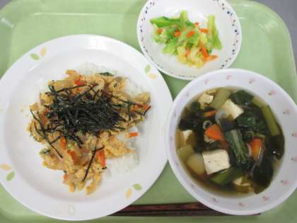 親子丼 牛乳 野菜のひと塩 すまし汁