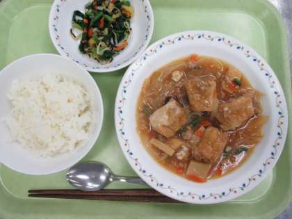 ごはん 牛乳 生揚げそぼろあんかけ 野菜の辛子醤油かけ