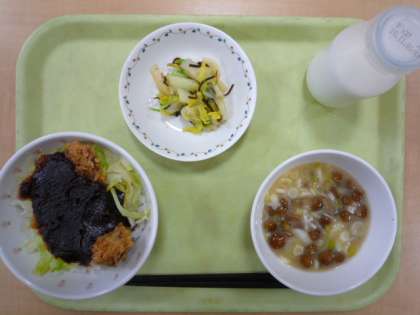 いよいよ明日、6年生の連合運動会です。この2,3週間、練習に練習を重ねて、力をつけてきたものと思います。自分のベスト記録を目指して、明日ぜひ活躍してください。今日の給食は、縁起を担いで「かつ丼」でした。おいしかったです。