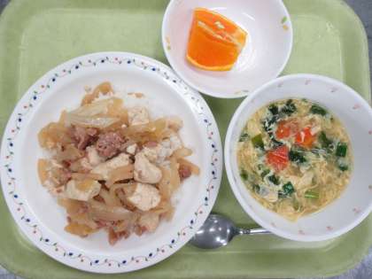 肉豆腐丼 牛乳 かきたま汁 デコポン