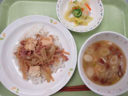 豚丼 牛乳 即席漬 なめこの味噌汁