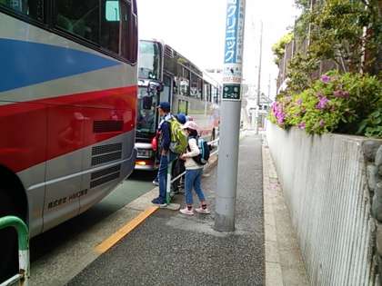 今日は、6年生の遠足で鎌倉方面に行きます。北条政子の墓・源氏山公園から大仏までのハイキング・由比ヶ浜に行きます。