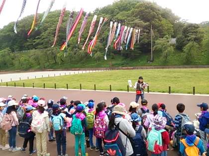 こどもの国に到着しました。今日はたくさんの学校がきています。