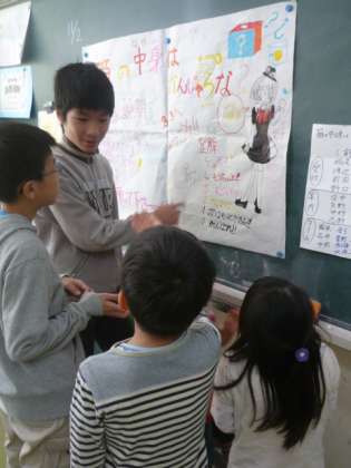 4年生のお兄さんが、2年生2人を連れて「ここに入ろうか?」と言うと「うん!」とうれしそうに答える2年生。その様子を見て微笑む4年生。頼りがいのある姿に感動しました。6年生も1年生を連れて、いろいろな教室に出かけました。1年生は安心しきって6年生の手を握っています。このような上級生と下級生とのつながり、心の交流、会話が一気に増えて、これからの学校生活でも子どもたちがお互いにやさしくなってくれたらいいなと思っています。貴重な第1回目の異学年交流活動のロング集会となりました。