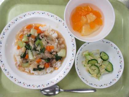 あんかけチャーハン 牛乳 野菜のごま風味 フルーツポンチ