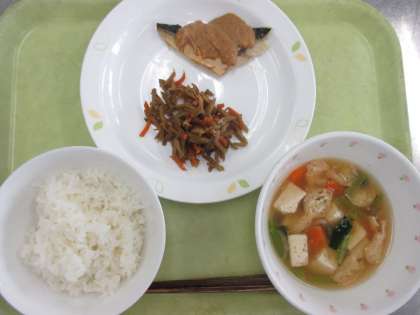 ごはん 牛乳 さばのごまだれかけ きんぴらごぼう 吉野汁