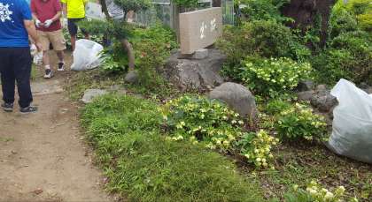 19日(土)、おやじの会その他の皆さまが、運動会に向けてハッピーガーデンの手入れをしてくださいました。ここは運動会当日、ベビーカー置き場になる予定です。