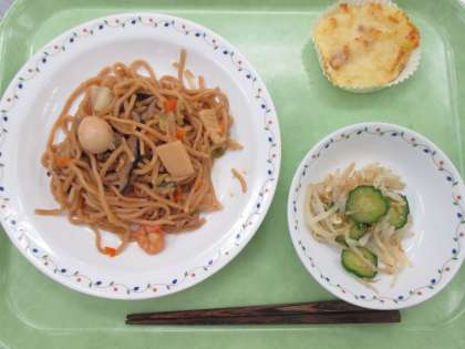 五目焼きそば 牛乳 野菜の中華味 じゃがいものタルト