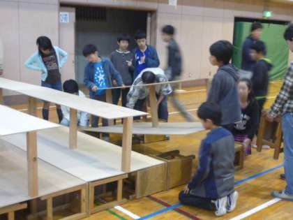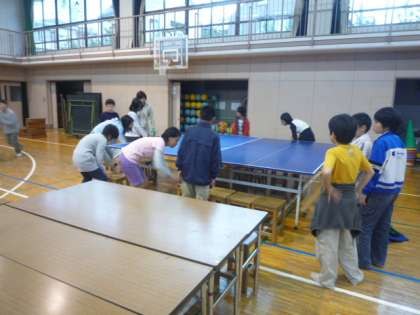 6校時、6年生全員で、今週の金・土の展覧会に向けて体育館の展示をするための用具運びのお手伝いをしてもらいました。1年から6年と図工・家庭科の作品を並べるための机や板、パネルなどの搬入作業です。どの子も一生懸命お手伝いしてくれて、とても気持ちがよかったです。展覧会の後片付けは、5年生がお手伝いすることになっています。6年生、ありがとうございました。5年生、よろしくお願いします。