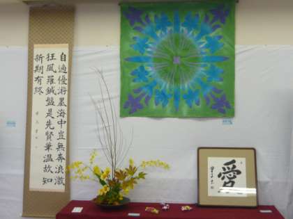 体育館2階のミーティングルームが、保護者・地域の方々の作品展覧会会場になっております。保護者の皆様や地域の皆様のすばらしい技能や才能がほとばしってくるすばらしい作品ばかりです。子どもたちの作品だけでなく、ぜひ、こちらにも足を運んでいただき、鑑賞していただければと願っております。