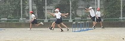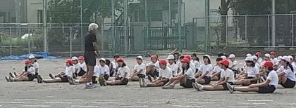 今日から、6年生が連合運動会に向けた練習に入りました。学校の校庭はご存知のように仮設校舎建設のために思いっきり走り回れる環境にありませんので、今日を入れて4回、玉川中学校の校庭をお借りして、練習することになりました。例年のように、指導は元玉川中の体育を指導していらっしゃった末次先生にお願いしています。今日は、100メートル走とハードル走、走り幅跳びの記録をとることにしました。久しぶりの広い校庭での運動で、気持ちは前に行くのですが足が前に進まない状態で、どの子も苦戦しているようでした。これから校庭でもできる練習を重ね、いい記録が出せるように挑戦していってほしいです。