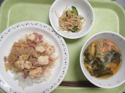 豚丼 牛乳 もやしときゅうりのごま風味 じゃが芋の味噌汁
