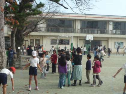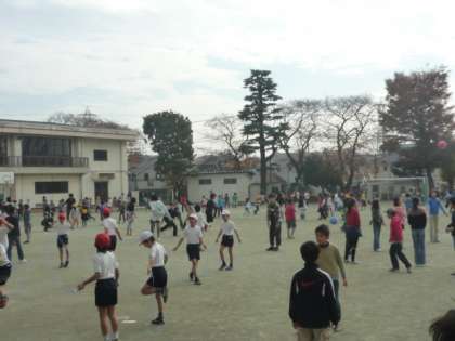小春日和になった今日の中休み、たくさんの子が校庭で楽しそうに遊んでいました。ドッジボール、なわとび、バスケットボール、おにごっこ、竹馬、一輪車、みんな元気いっぱいです。