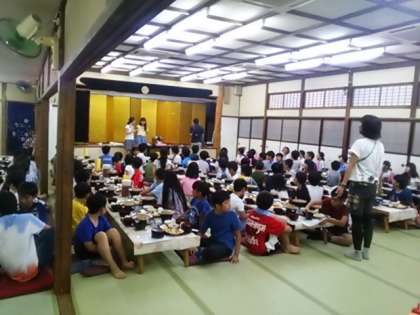 ハイキングもあり、みんなお腹が減っているようです。「いただきま〜す」