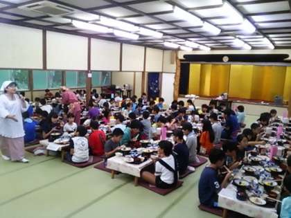 お味噌汁は栃木県の名産かんぴょう入りです。みんなモリモリ「いただきます」。
