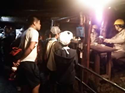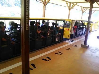 トロッコに乗ります。その後は昔そのままの採掘場を歩いて見学しました。