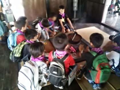 次大夫堀民家園には古民家がいくつもあります。炉を囲んでの見学もしました。