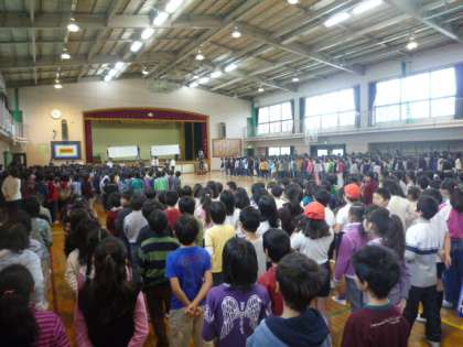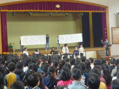 先週くらいから校舎の2階あたりから「気球に乗ってどこまでも」の歌声が聞こえていました。今日の朝登校してきた子どもも口ずさんでいました。子どもたちはこのメロディーが大好きなんですね。今日の音楽朝会では、歌いたいという子どもたちの気持ちが乗って、元気のよい歌声が体育館に響きました。