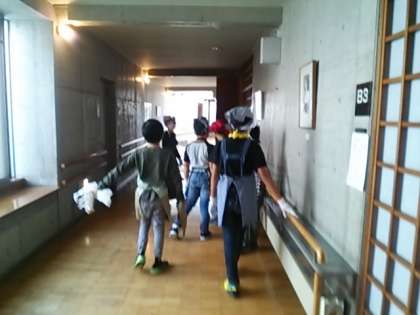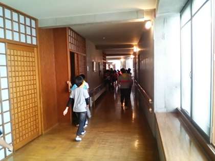 部屋に戻って、避難訓練です。避難経路の確認をしました。その後は荷物整理とカレー作りまでのを部屋ごとに過ごす楽しい時間です。