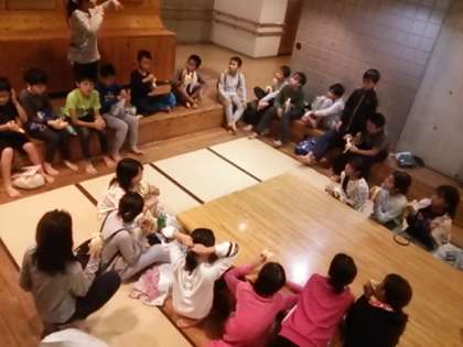 入浴後は夜食のバナナです。夕食(カレー)が早かったのでみんなペロリと食べました。