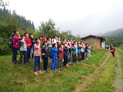 登山道に入って「ヤッホー」。クラスみんなで大きな声と出してみました。
