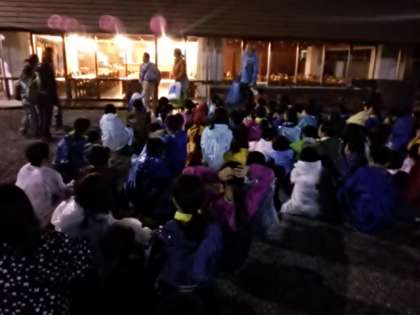 夜の空模様が心配なのでナイトハイクの時間を早めることにしました。雨は降っていませんが、防寒着を兼ねて雨合羽を着て参加します。