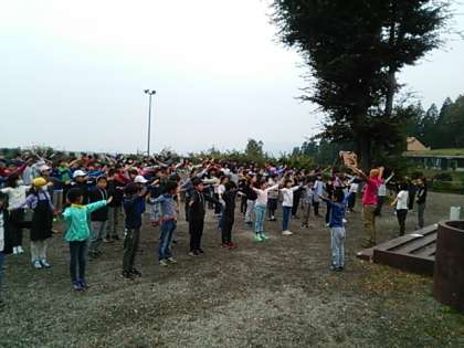 今朝は、6時までぐっすり寝ていた子が多かったようです。今朝は帰り支度があり、大忙しです。ラジオ体操で目を覚まします。