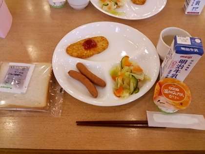 3日目の朝食は洋食です。パンの方が食べやすい子も多くいます。