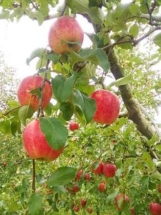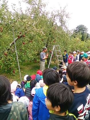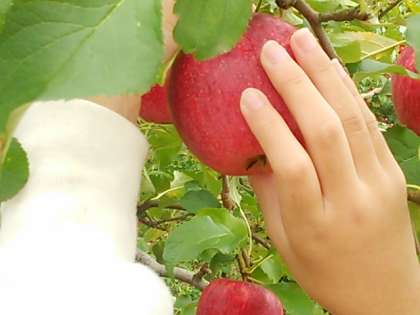 一人ひとつ「あかぎ」というリンゴもぎを体験します。