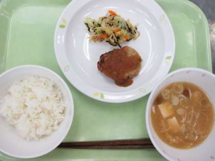 ごはん 牛乳 和風ハンバーグ のり酢あえ なめこの味噌汁