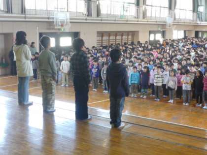 正門前で朝の挨拶をしていると、「あけましておめでとうございます。」「今年もよろしくお願いします。」というしっかりとした挨拶ができる子どもたちがたくさんいました。とても朝から嬉しくなりました。「久しぶりだな。」と言って門を通る子もいました。始業式では、全員がそろって、元気にあいさつしました。3年生の4人が3学期の抱負を話してくれました。音楽クラブの子どもたちも立派に演奏できました。