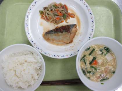 ごはん 牛乳 魚のかわりソースかけ 野菜ソテー にらたまスープ