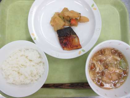 ごはん 牛乳 さばの塩麹焼き じゃがいものごま和え なめこの味噌汁