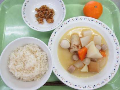 茶飯 牛乳 洋風おでん 大豆とじゃこの甘辛揚げ みかん