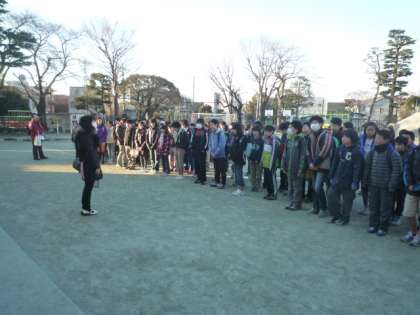 6年生全体で校外に出る最後の学習となった、社会科見学。過去(東京江戸博物館)、現在(国会議事堂)、未来(科学博物館)の見学を、玉川小6年という名前を背中に付けているつもりで見学してくださいと子どもたちに話しました。元気に出発式を終えました。