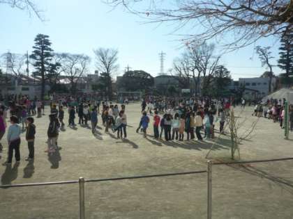 今日も元気に、中休みのチャイムが鳴ると、校庭に続々を長縄や短縄を持って場所取り。音楽に合わせて、全学級がそれぞれ一つになって、担任の先生と子どもたちと長縄に興じている姿は、とても微笑ましい。