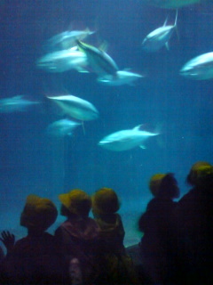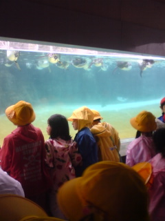 葛西臨海水族園に着きました。たくさんの学校が見学に来ていたので大変でしたが、みんな珍しそうに水槽を見つめていました。
