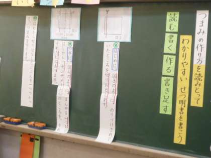 5時間目、2年2組で国語の説明文を使って、「文と図を対応させながら説明されている事柄を読む」力をつける授業が行われました。図に描かれている内容が文章のどこに書かれてあるか、書かれてあること以外に書き足すことはないかなど、2年生なりに一生懸命考えて、学習していました。説明書の読み方が上手な子どもたちになってほしいです。