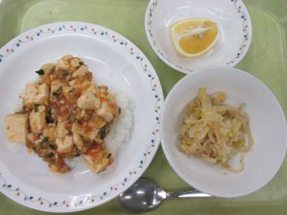 麻婆豆腐丼 牛乳 野菜の中華味 はるか