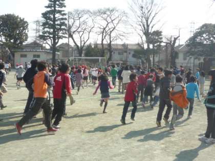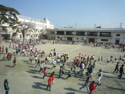 今日から18日(金)までの2週間、中休みの時間を使って、「みんなで走ろう」が行われます。5分間の音楽に合わせて、校庭の内側を1,2,3年生が、外側を4,5,6年生が走ります。みんな張り切って走っています。寒さに負けない強い体をつくる意味で、2週間走り通してほしいと思います。