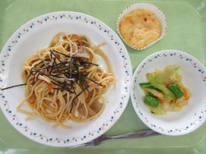 和風スパゲティ 牛乳 春野菜サラダ チーズケーキ
