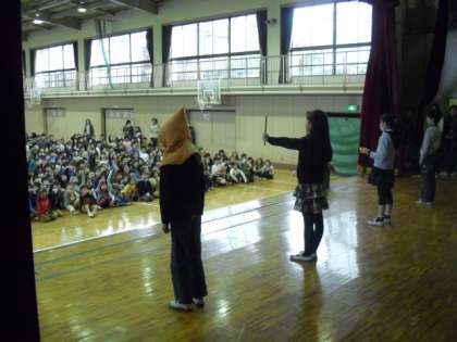 今朝はゲーム集会「まちがいさがしゲーム」を行いました。ステージに上がった子がものを持ったりポーズしたりします。一度幕が閉まり、再び開くと何かが変わっています。それをあてるのが「まちがいさがしゲーム」です。どこが変ったのか、皆真剣に観察していました。楽しい集会でした。