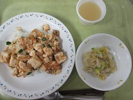 マーボーどん 野菜のちゅうかあえ リンゴゼリー 牛乳