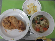 あげパン きゃべつと肉団子のスープ コーンポテト 牛乳