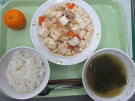 ごはん とうふの五目いため わかめスープ 牛乳 冷凍ミカン