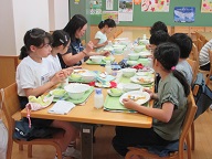 今日は 4年2組がランチルームでの給食でした。調理員の中村チーフと田中さんと給食を食べて 子どもたちは とても楽しそうでした。スタミナどんもからっぽ!!よく食べていました。