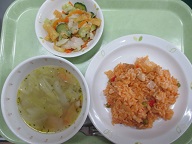 チキンライス・かりかり豆のサラダ・ABCスープ・牛乳